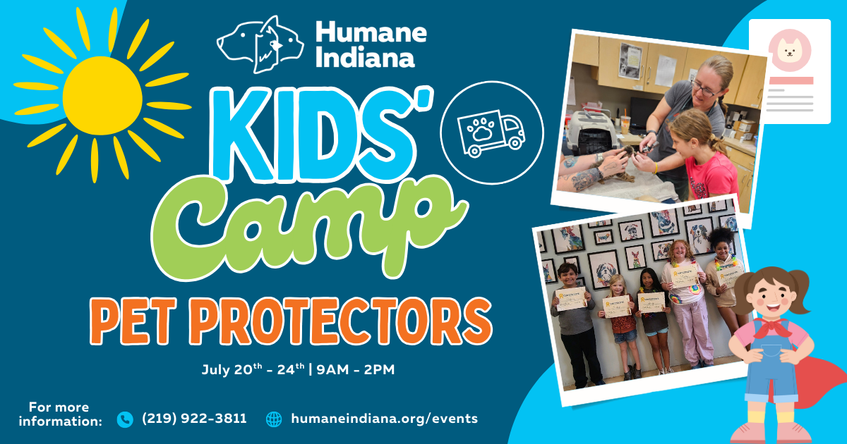 You're never too young to advocate for animals! Our "Pet Protectors" Summer Camp will allow students the opportunity to learn about Humane Indiana through creative lessons and projects. Campers will learn about our Shelter's mission, interact with adoptable pets, and discover how they can stand up for the humane treatment of animals in our community and beyond.